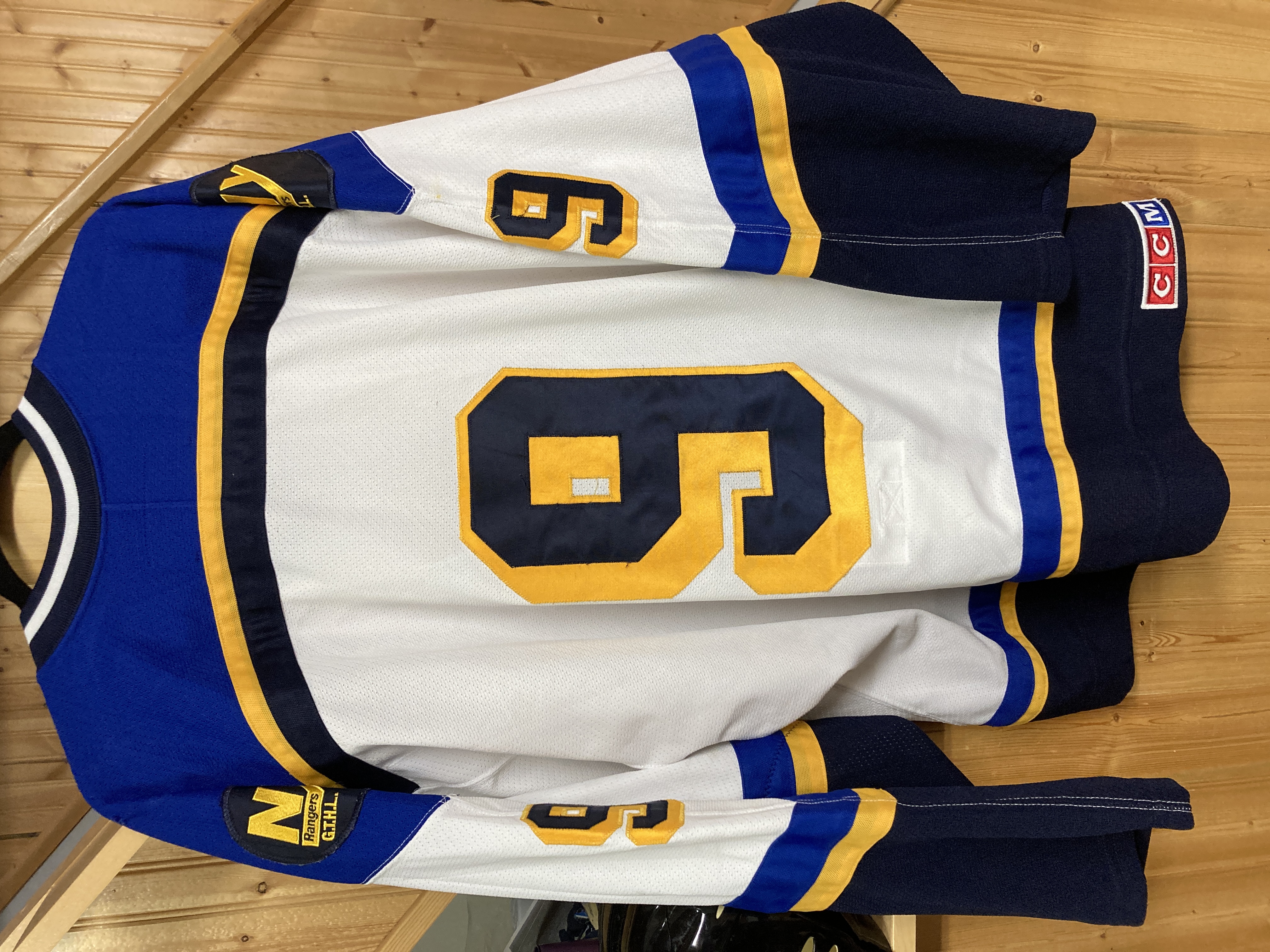 These jerseys were used for the 2004-05 pre-season games of the Wolf Pack as well as for the 2002 and 2003 pre-season games of the NY Rangers.