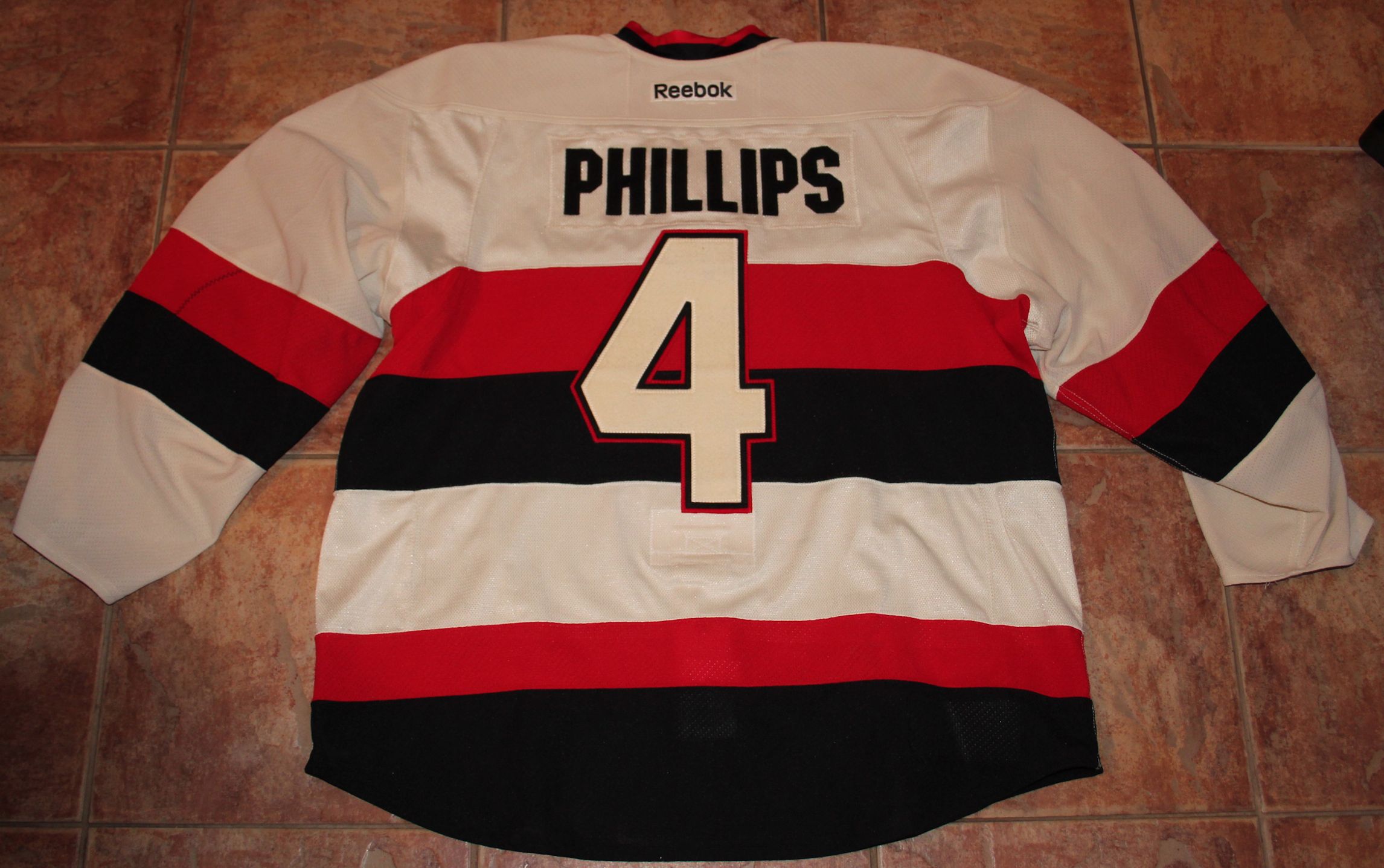 CHRIS PHILLIPS #4 OTTAWA SENATORS HERITAGE CREAM SET 4 (April 4th 2014)